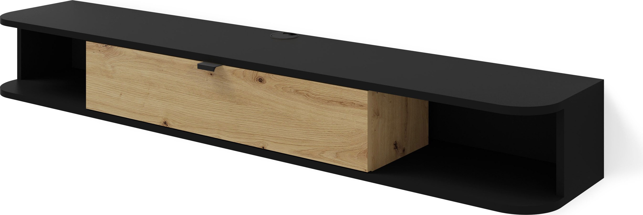 Meuble TV Icarus 156 cm NOIR MAT / CHÊNE ARTISAN - Meuble TV mural - Meuble suspendu - Buffet bas moderne pour le salon