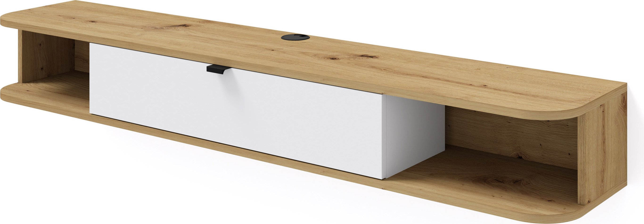 Meuble TV Icarus 156 cm ARTISAN CHÊNE / BLANC MAT - Meuble TV mural - Meuble suspendu - Buffet bas moderne pour le salon
