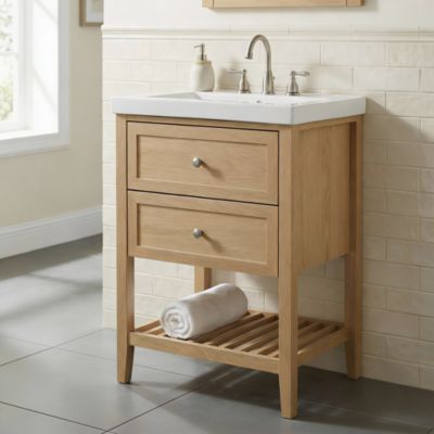 Meuble sous vasque à poser 2 tiroirs 1 niche placage chêne l.60 cm Perma + plan vasque blanc Lana, GoodHome