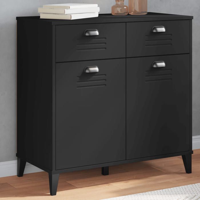 Meuble TV industriel 1 tiroir 3 portes et 2 niches verre éclairage LED finition noir et bois naturel