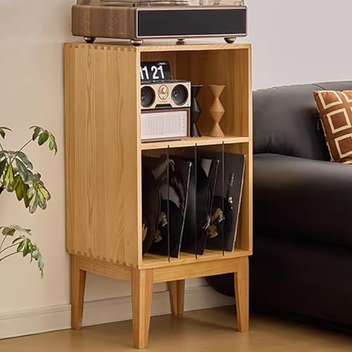 Rangements CD/DVD Support de tourne-disque, meuble de rangement for disques vinyles, support de platine avec 4 compartiments et pieds en bois, table de rangement for présentoir en vinyle for chambre à