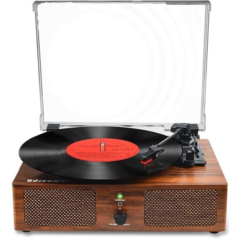 Platine vinyle vintage avec haut-parleurs intégrés, gramophone vintage, 3 vitesses, BT5.0, sortie aux 3,5 mm - Decdeal