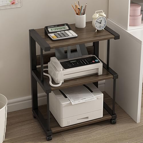 GOPLUS Meuble Platine Vinyle à 3 Niveaux avec Station de Charge, Roulettes Verrouillables, Cadre en Métal, Table d'Appoint pour 250 Vinyles pour Salon, Bureau, 52x45x75cm (Marron Rustique)