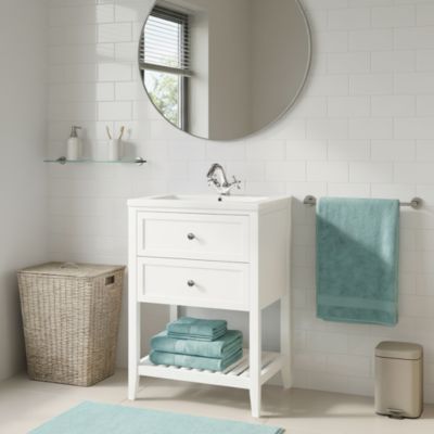Meuble vasque à poser blanc l.60 cm Imandra + plan vasque blanc céramique Lana, GoodHome