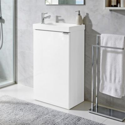 Meuble lave mains à poser blanc brillant l.44 cm Imandra + plan vasque blanc résine Beni, GoodHome
