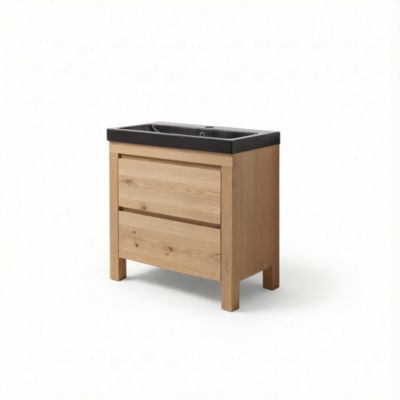 Meuble sous vasque à poser chêne massif et plaqué chêne l.90 cm + plan vasque en quartz composite noir, Cooke & Lewis Harmon
