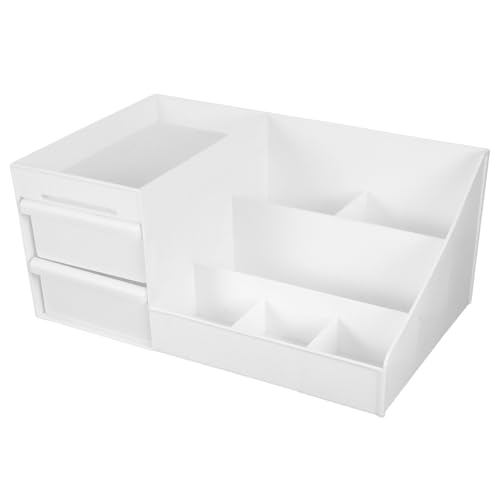 RORPOIR Organisateur de Maquillage Divisé pour Bureau Boîte de Rangement Cosmétique Blanche Compartiments Multi-usages pour et Soins Meuble de Coiffeuse Robuste et Spacieux
