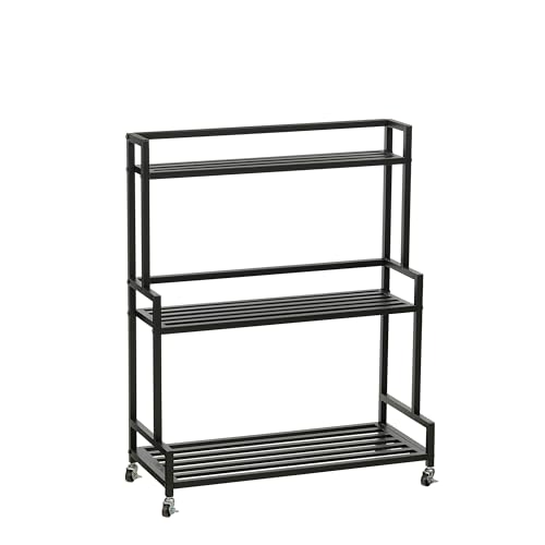 MICA Decorations Greenrax Meuble de Rangement sur Roulettes - Etagere Rangement pour Plantes Interieur, Plantes Exterieur ou Outils de Jardinage - 80 x 35 x 81 cm - Fer - Nero