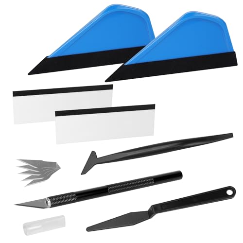 FOSHIO Kit de Films de Voiture Teinté Kit Covering Outils de Film Comprenant Un grattoir en Plastique,Cutter, Spatule Plastique,pour Film vitre teintée Voiture,Stickers Meuble (Bleu)