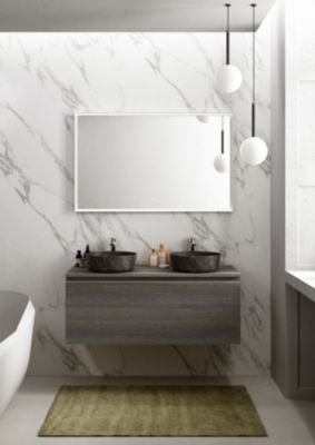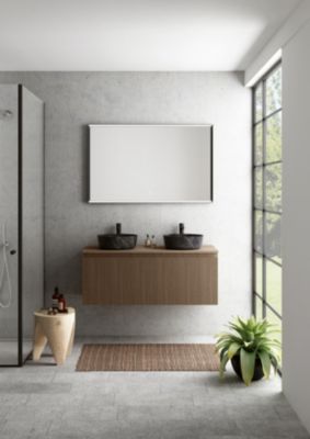 Meuble vasque suspendu plaqué noyer strié l.120 cm + plan de toilette plaqué noyer pour 2 vasques, Pura+