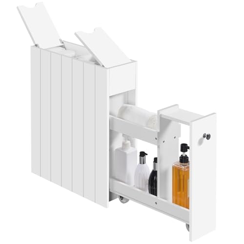EUGAD Meuble de Salle de Bain, Petit Meuble de Rangement de Salle de Bains, Armoire Étroit pour Papier Toilette, Gain de Place, pour Petits Espaces, 18 × 18 × 71 cm, Blanc 0229WY