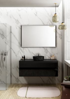 Meuble vasque suspendu noir mat et verre fumé l.120 cm + plan de toilette noir mat résine pour 1 vasque, Pura+
