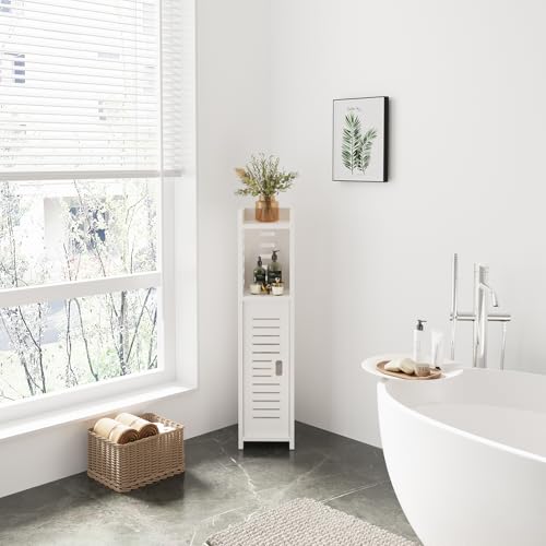 Hzuaneri Meuble de Salle de Bain, Petit Meuble de Rangement de Salle de Bains, Armoire Étroit pour Papier Toilette, Armoire d’Angle avec Porte et Étagères 20 x 25 x 90 cm, Blanc BC38213G