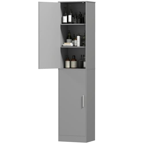 HOMCOM Meuble de Salle de Bain, Colonne Salle de Bain étroit avec 2 Portes et 4 étagères réglables, Meuble de Rangement pour Salon, Toilette, Petits espaces, 40 x 35 x 180 cm, Gris