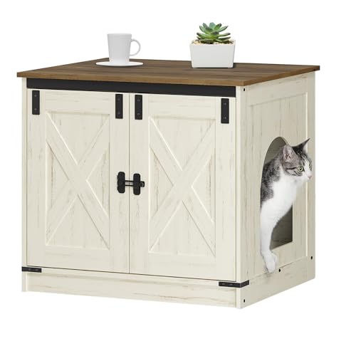 Hzuaneri Maison de Toilette Chat, Meuble Litiere pour 2 Chats, Meuble pour Bac à Litière Caché, Maison pour Chat D'intérieur, Style Ferme, 119 x 48 x 53,5 cm, Marron Rustique et Blanc CB85314X