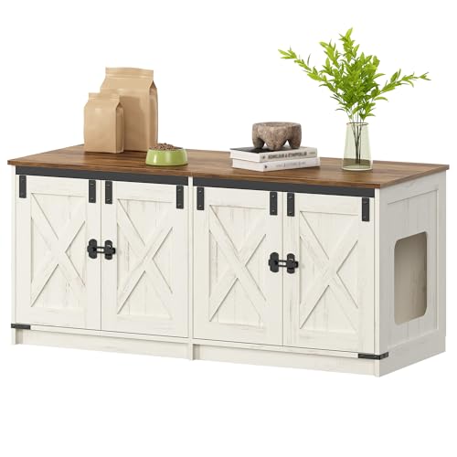 Hzuaneri Maison de Toilette Chat, Meuble Litiere pour 2 Chats, Meuble pour Bac à Litière Caché, Maison pour Chat D'intérieur, Style Ferme, 119 x 48 x 53,5 cm, Blanc CB85313W
