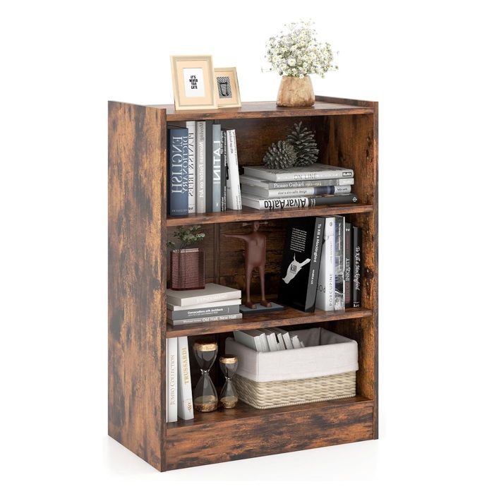 GIANTEX Meuble de Rangement Bibliothèque à 3 Niveaux Étagères Réglables à 18 Positions pour salon chambre 50x30x75 cm Marron