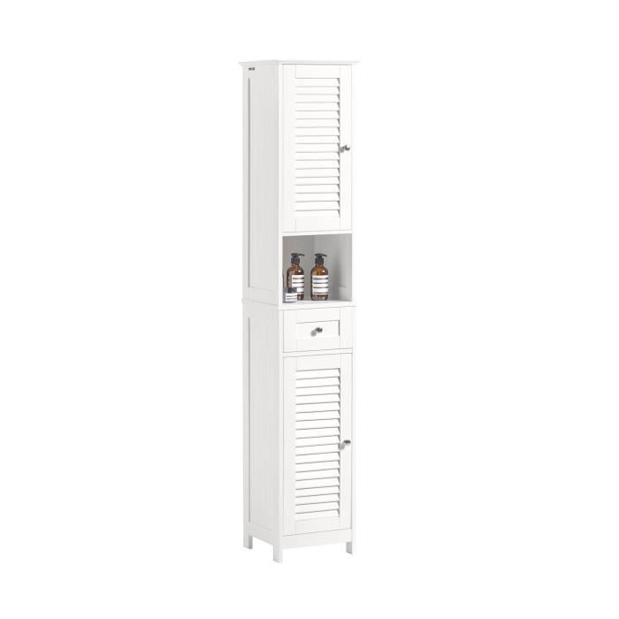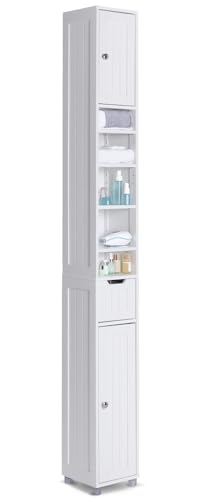 vounot® Meuble de Rangement Haut Armoire de Salle de Bain avec Etagère Réglable Tiroir et Armoires à Portes Meuble Colonne pour Chambre Salon Cuisine et Couloir 20x20x180cm Blanc