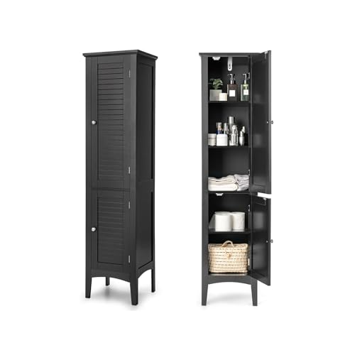 COSTWAY Meuble de Rangement Salle de Bain, Meuble Colonne sur Pied avec Rangement à 5 Niveaux, Organisateur pour Cuisine, Salon, 37 x 37 x 160 cm (Noir)