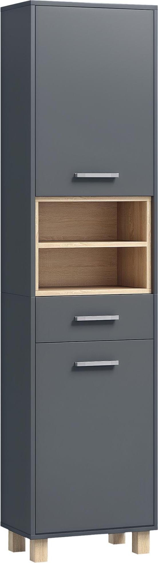 HOMCOM Colonne salle de bain, meuble salle de bain rangement, meuble de rangement avec 2 placards, tiroir et 2 compartiments ouverts, armoire haute pour salon, cuisine - 40 x 24 x 160 cm, gris
