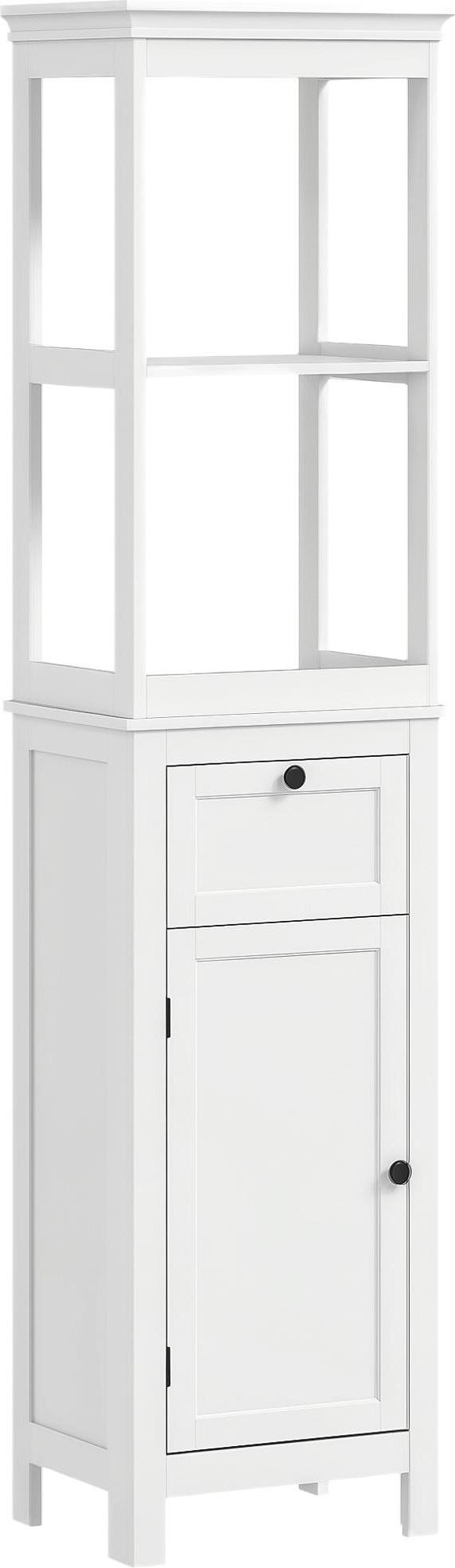 VASAGLE Meuble de Rangement de Salle de Bain, Armoire Haute, Bibliothèque, avec 2 Compartiments Ouverts, 1 Tiroir et 1 Placard, 32,5 x 60 x 122 cm, pour Salon, Cuisine, Bureau, Blanc BBC64WT