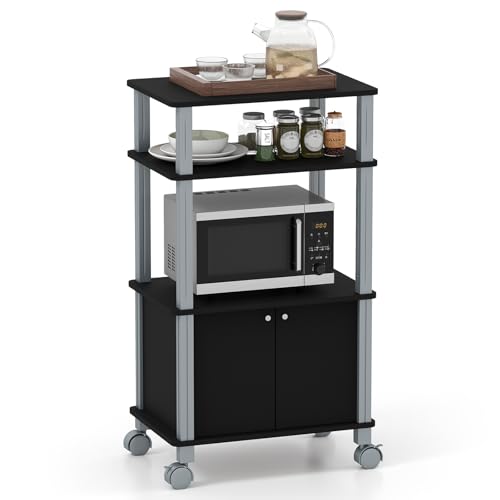 COSTWAY Desserte Micro-Onde à roulettes, Chariot de Cuisine,Meuble de Rangement 2 Niveaux d'étagères Ouvertes et d'Armoires, 60x39,5x92,85cm