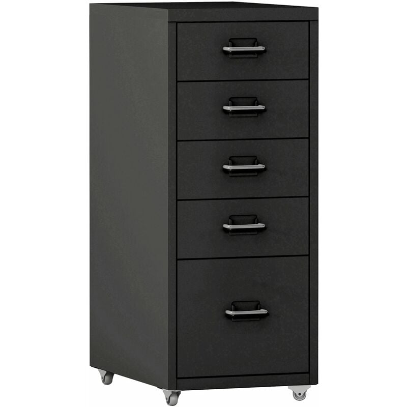 Caisson de bureau meuble de rangement pour documents dossiers fournitures de bureau à roulettes avec 5 tiroirs 69 x 28 x 41 cm noir