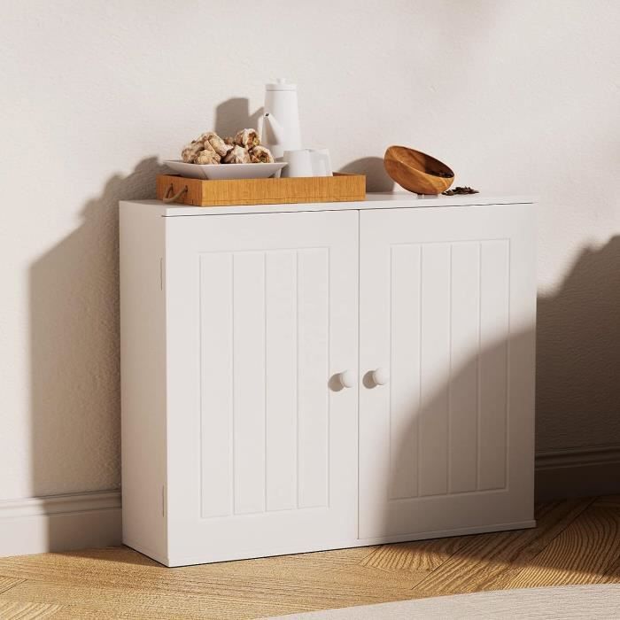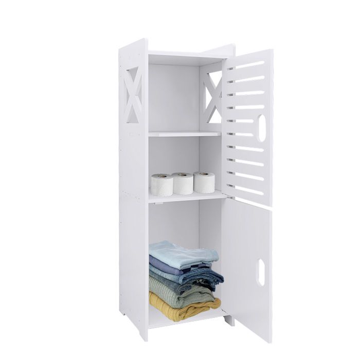 Meuble de salle de bain blanc meuble de rangement étroit en bois à fixer au mur ou au sol meuble mural à double porte