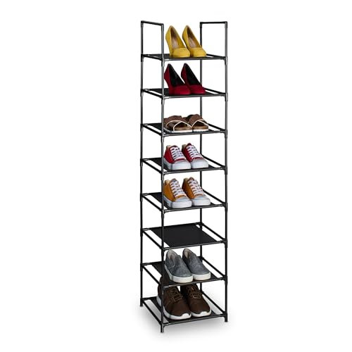 Relaxdays Rangement à Chaussures, 8 Niveaux, HxLxP : 140x33x33 cm, Meuble métal & Niveaux en Tissu, étroit, Noir - Gris