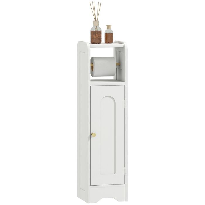 HOMCOM Meuble salle de bain meuble toilettes WC rangement étroit avec étagère réglable gain de place pour petits espaces blanc