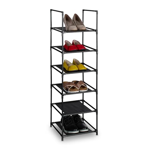 Relaxdays Rangement à Chaussures, 6 Niveaux, HxLxP : 106x33x33 cm, Meuble métal & Niveaux en Tissu, étroit, Noir - Gris