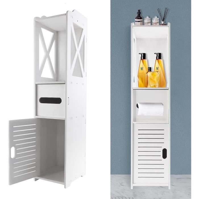 Meuble de rangement étroit autoportant pour les petits espaces, idéal pour les espaces de salle de bain, buanderie et salon