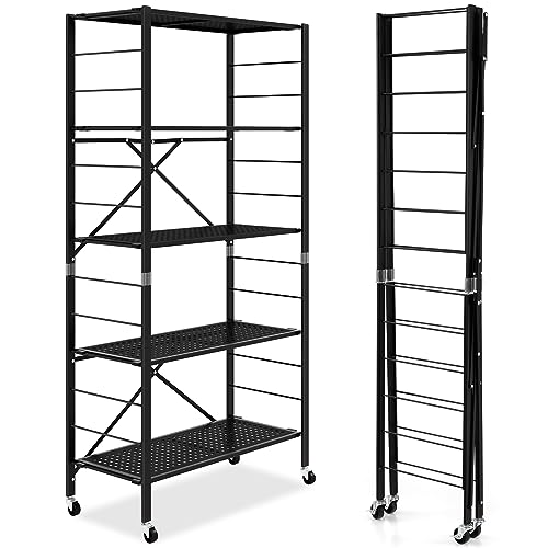 GOPLUS Étagère de Rangement Pliable à roulettes 3 en 1, Meuble de Rangement avec Cadre Métallique Robuste et Étagère Ajustable en Hauteur, Fermoir de Liaison en Plastique, Noir