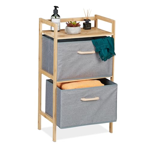 Relaxdays Meuble à Linge, Bambou, Surface de Rangement Ouverte, 2 corbeilles en Feutre, HLP 76 x 43 x 27 cm, Nature/Gris