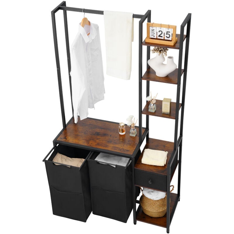 Mophorn Trieur de linge à 2 compartiments avec étagères, tiroir et sacs en tissu Oxford 600D, meuble de rangement suspendu pour vêtements sales,