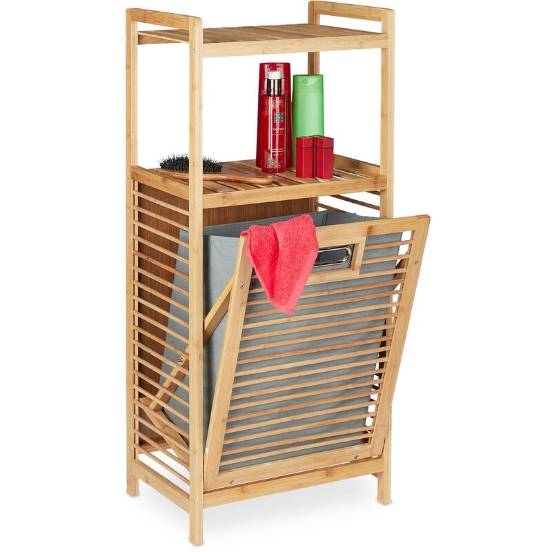 Relaxdays - Meuble à linge, avec bac pliable, 2 surfaces de rangement, bambou et tissu, hlp 95 x 40 x 30 cm, nature/gris