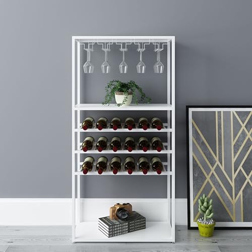 Casier à vin autonome à 5 niveaux, meuble de bar spacieux pour spiritueux et verres, style industriel, rangement de bouteilles pour la maison, le bar, la cuisine, le salon (blanc A)