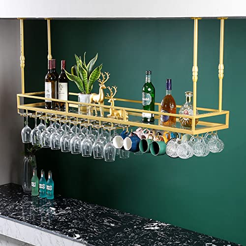 QYMYOZ Étagère à vin Suspendue au Plafond pour Bouteilles de vin et Verres à Pied, étagère de Rangement sous Meuble de Cuisine/Bar.