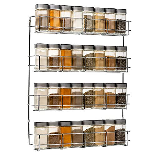 Coninx Étagère à Épices Murale | Porte-Épices Mural ou Fixation Porte Meuble avec vis | Rangement de Cuisine pour Épices | 4 Étages pour 32 Pots d'Épices | Porte-Épices en Métal 50x40.5x6cm