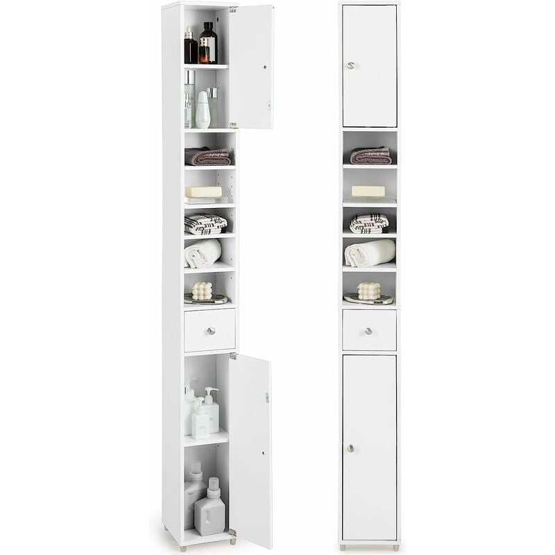 Costway - Meuble de Rangement Salle de Bain, Meuble Colonne avec 2 Placards à Porte, 1 Tiroir et 5 Étagères Réglables, Armoire de Toilette, 20 x 20 x