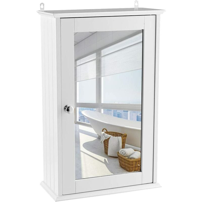Goplus - Armoire de Toilette Murale Meuble Mural Salle de Bain en mdf Pente nc avec 1 Porte et Miroir Etagere de Rangement Blanche 34 x 15 x 53 cm