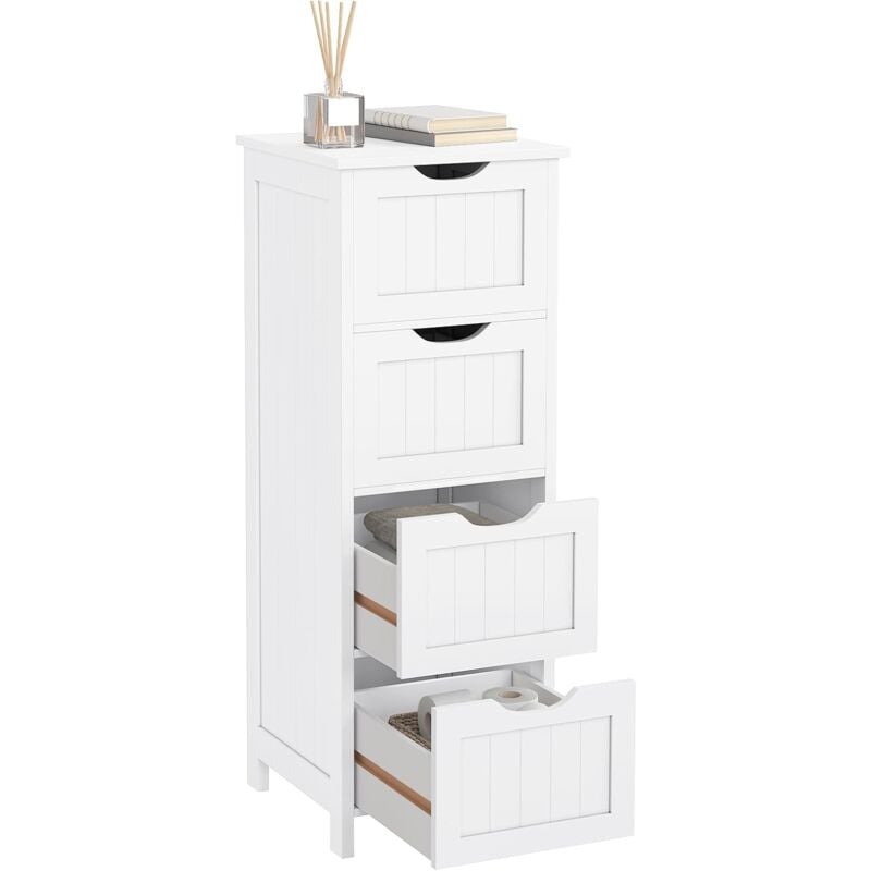 Woltu - Meuble de Toilette sur Pied Armoire de Rangement avec 4 tiroirs, Armoire Polyvalente Table de Chevet, 30 x 30 x 82cm, Blanc
