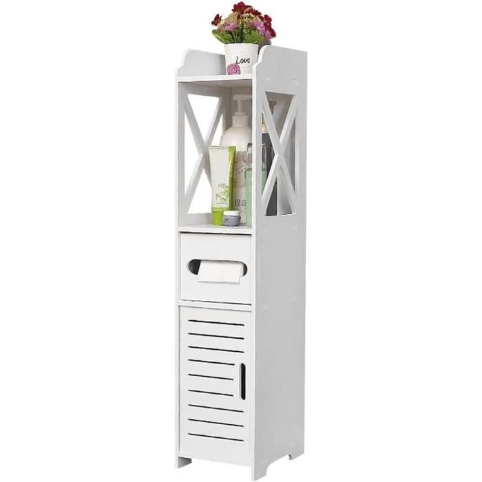 Meuble rangement au-dessus toilettes avec porte coulissante étagère dessus wc étagère réglable blanc