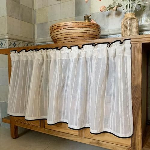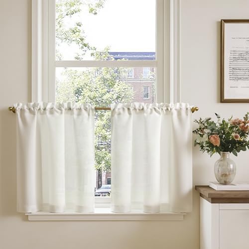 TOPICK Rideaux Cuisine Court Blanc 90L x 90H(cm) pour Meuble Bas Placard Fenetre,à Passe Tringle Intérieurs,Petit Rideau Brise-Bise,Moderne,2 Panneaux