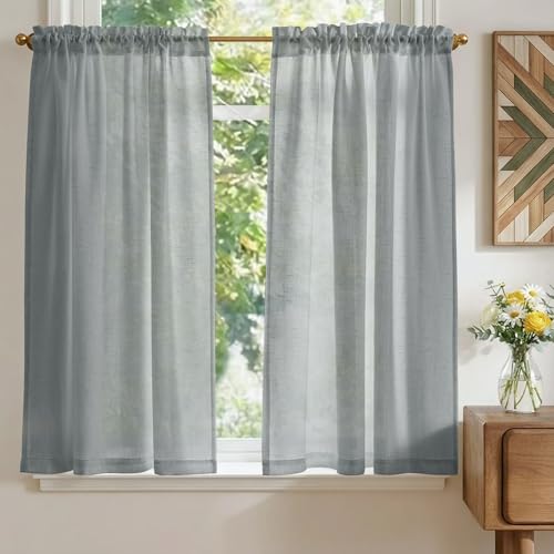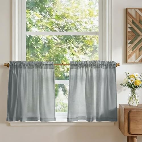 TOPICK Rideaux Cuisine Court Brise Bise, Gris Clair 65L x 60H(cm) 2 Panneaux à Passe Tringle Petit Rideau, pour Fenêtre Placard Meuble Bas Chambre Cache Evier,en Effet Légers