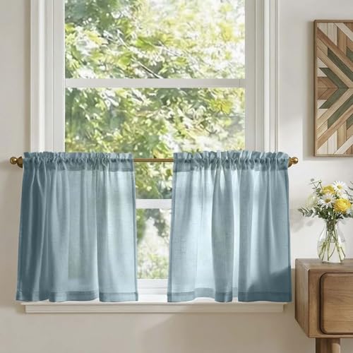 TOPICK Rideaux Cuisine Court Brise Bise, Bleu 65L x 60H(cm) 2 Panneaux à Passe Tringle Petit Rideau, pour Fenêtre Placard Meuble Bas Chambre Cache Evier,en Effet Légers