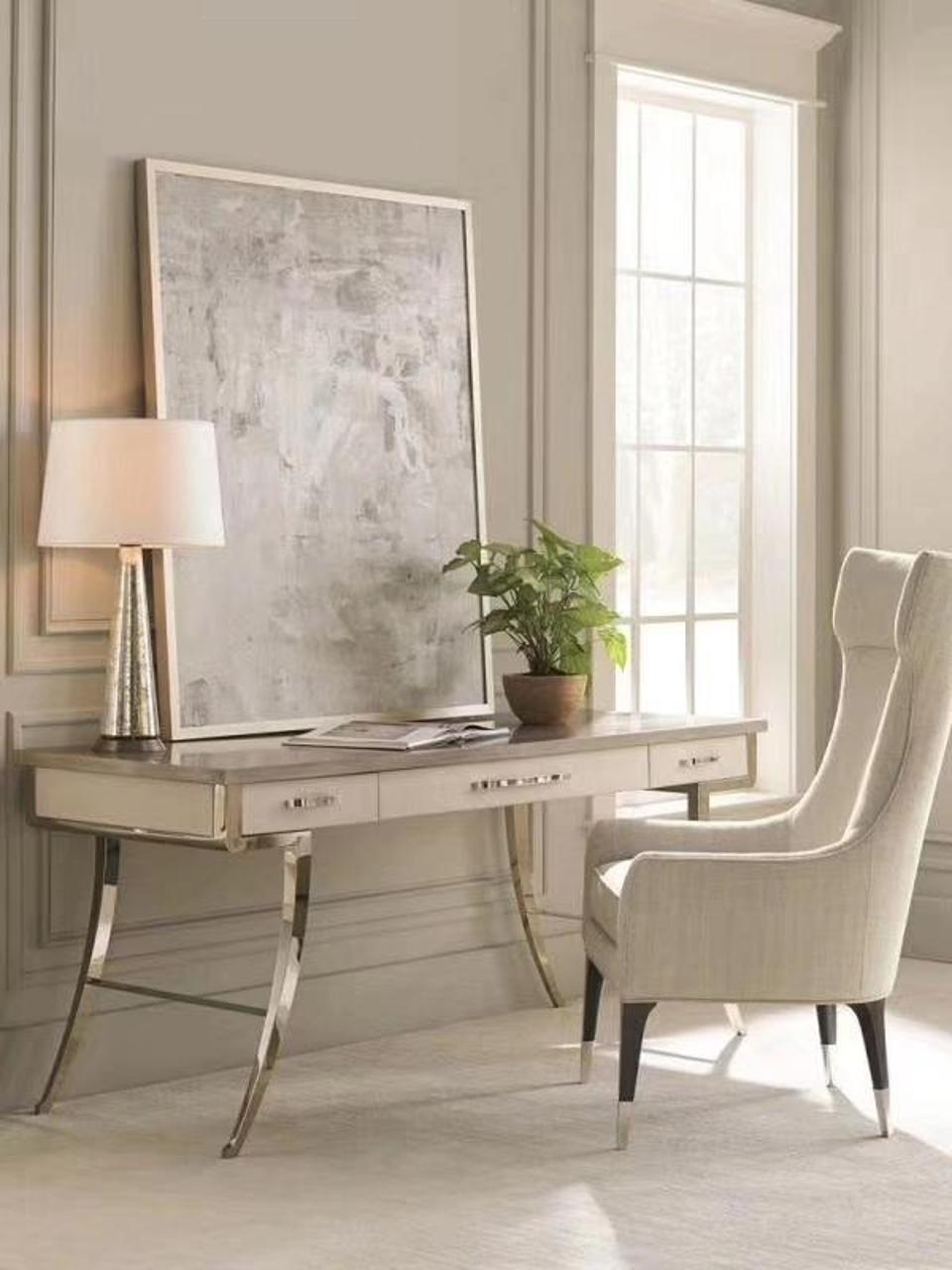 Design Bureau Table Fauteuil Meuble Set Tables Secrétaire de luxe en acier inoxydable 2pcs.