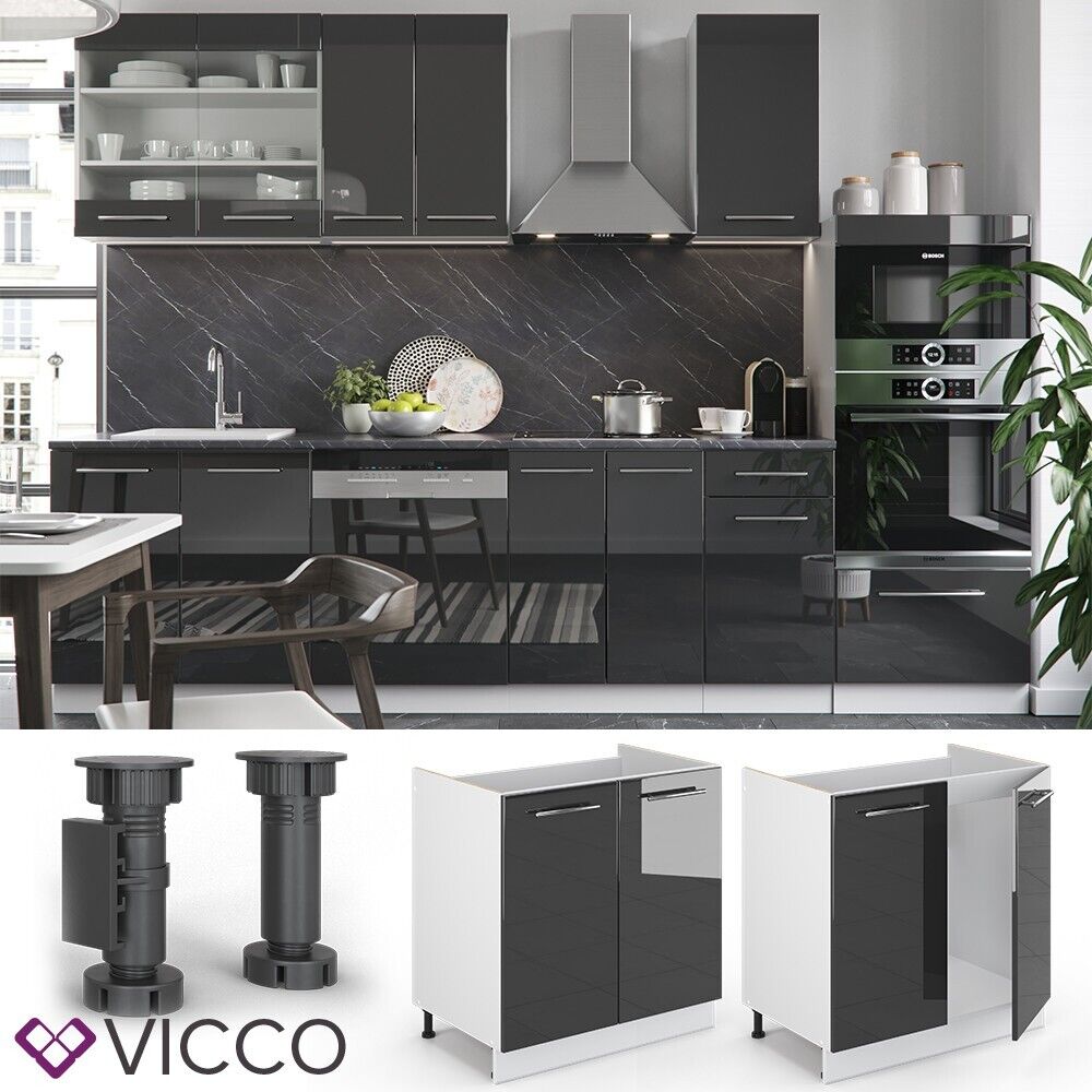 Vicco Meuble sous évier Fame-Line, 80 cm avec étagère, PT Anthracite, Bleu foncé brillant/Anthracite