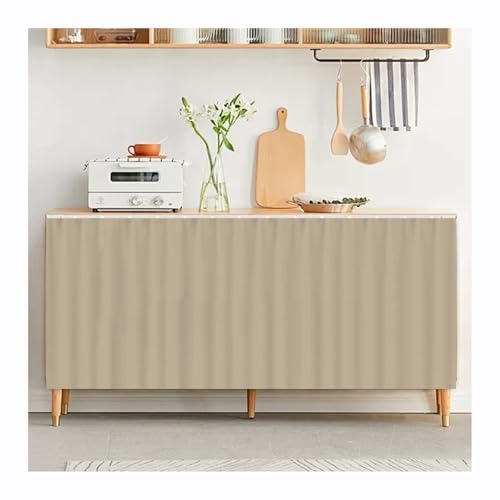 Highdi Rideau Armoire Cuisine Courts, Meuble Rideau Cache Placard Anti Poussière Auto-Adhésif sans Perçage pour sous Evier, Cuisine Porte de Placard, Étagères (Beige 5,140 * 100cm)
