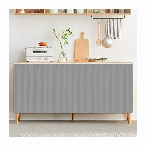 Highdi Rideau Armoire Cuisine Courts, Meuble Rideau Cache Placard Anti Poussière Auto-Adhésif sans Perçage pour sous Evier, Cuisine Porte de Placard, Étagères (Gris foncé,140 * 100cm)